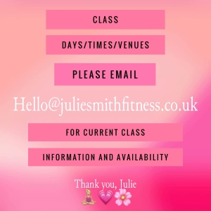 If you would like to book please email me hello@juliesmithfitness.co.uk Thank you